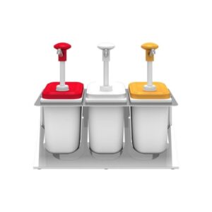• Kalando KD-004 Basmalı Sos Pompası Silindir Hazneli Üçlü Stant Paslanmaz 3x2.25 L