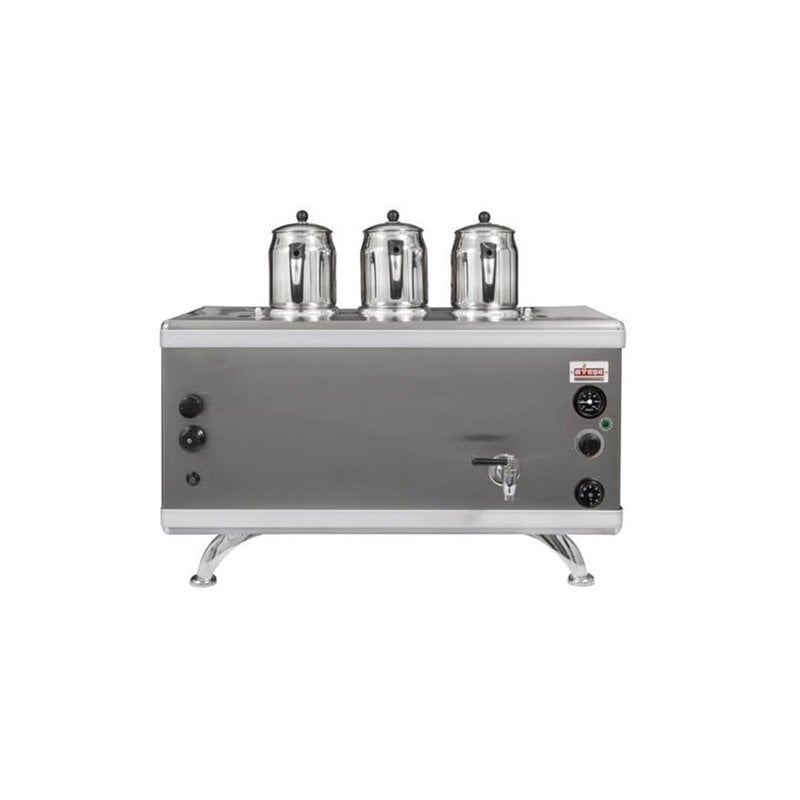 Ateşe Gold Compact Otomatik Gazlı Elektrikli İnox 3 Demlikli Çay Kazanı, 34 Litre |