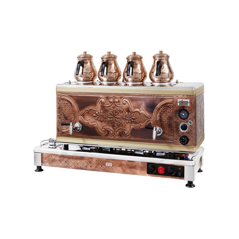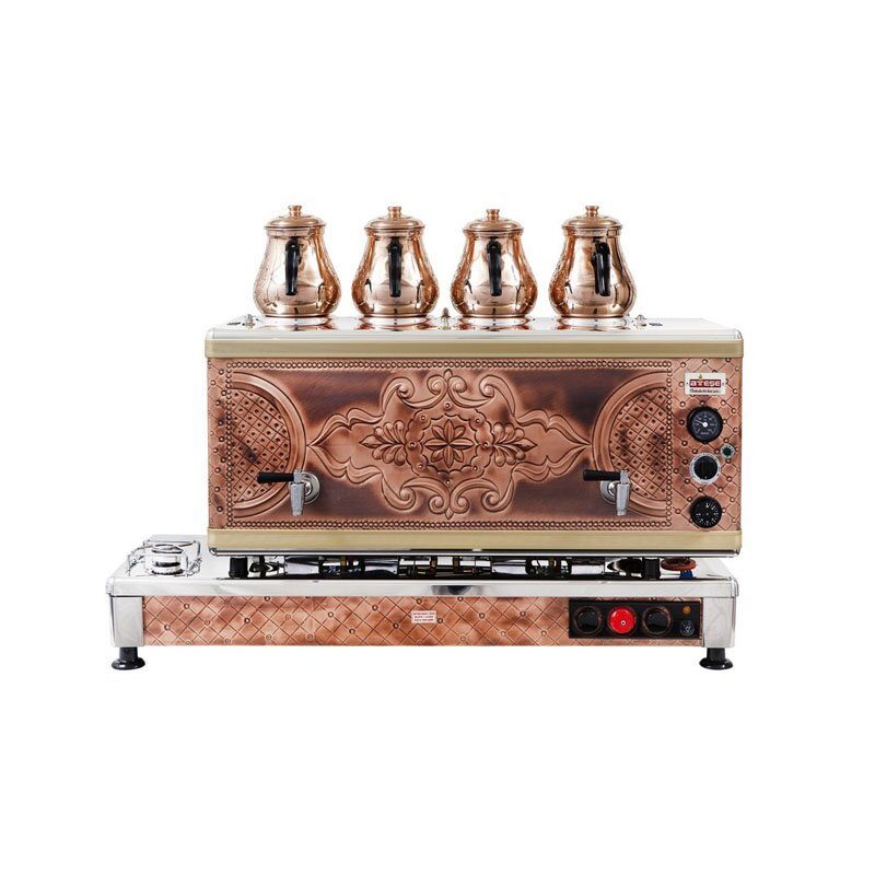 Ateşe Silver Otomatik Gazlı Elektrikli Bakır 4 Demlikli Çay Kazanı, 45 Litre |