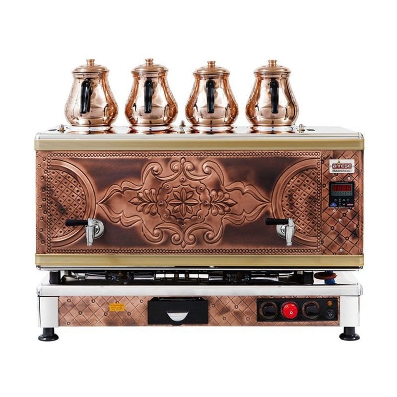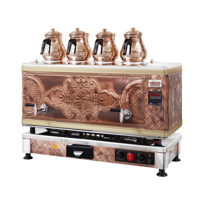 Model: Ateşe Titanium Akıllı Dijital Gazlı Elektrikli Bakır 4 Demlikli Çay Kazanı, 45 Litre