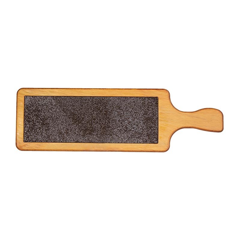 Biradlı Steak Ahşap Sunum Tahtası, Bazaltlı, Kulplu, 45×14 cm