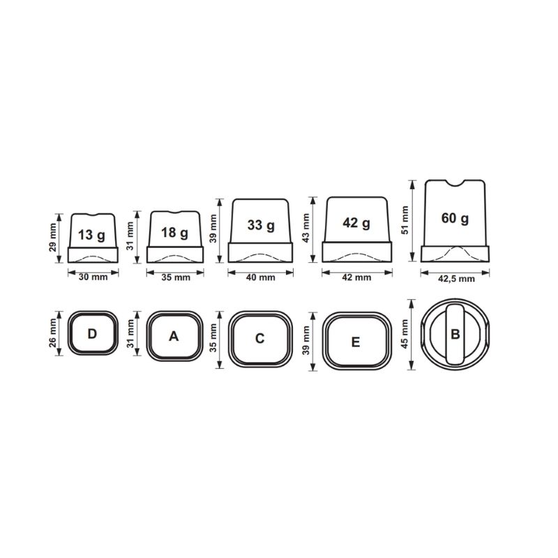 - Buz Boyutu: 13 Gram / 18 Gram / 33 Gram / 42 Gram / 60 Gram