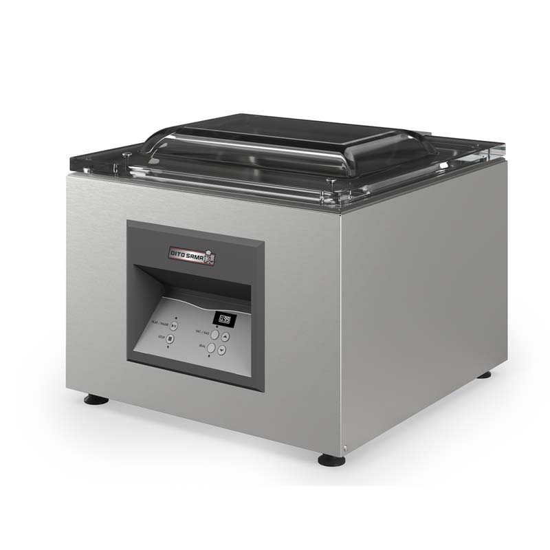 Yağla yağlanmış vakum pompalı masa üstü vakumlu paketleme cihazı. Kalibrasyon gerektirmeyen, yüksek hassasiyetli vakum sensörü. Paslanmaz çelik basınç odası, otomatik açılan şeffaf kapak. Sıvı, nem, kir ve toza dayanıklı kontrol paneli. 10 program, kavanoz/kaplar için 1 vakum döngüsü. Ayarlanabilir kapatma süresi, özel pompa yağı temizleme döngüsü. Otomatik uyarılar: sıcaklık düşüşü, arıza, gaz eksikliği. Harici vakum paketleme için hava çıkış ağzı. Sızdırmazlık çubuğu 410 mm, temizlenmesi kolay. Tamamen 304 AISI paslanmaz çelikten.