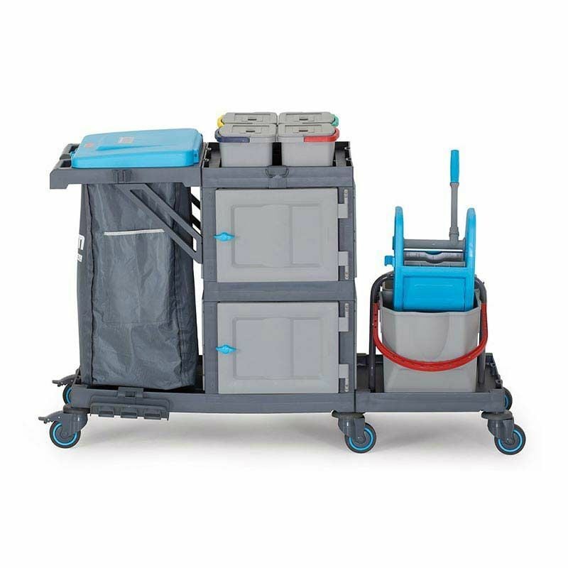 tekerlekleri sayesinde çarpmalara karşı birebirdir. Pres kovalı temizlik arabası aynı zamanda Frenli tekerlekleri