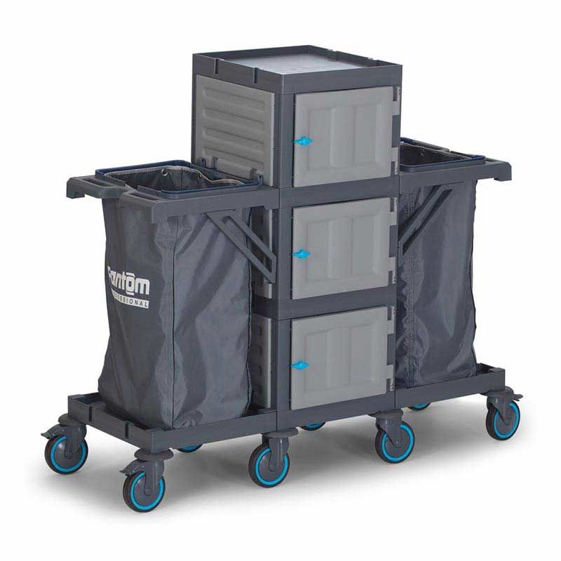 procart 404 dolaplı kat arabası, 2 çöp bölmeli. Rahatça hareket edebilen sessiz tamponlu ve frenli tekerlekleri