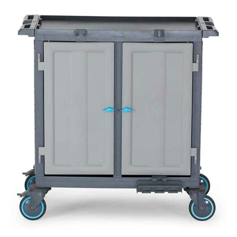 tekelleri sayesinde eğik düzlemlerde sabitleme imkanı sağlar. Kat arabası 2 x 18 lt kova takımı ve diğer tarafta 1 adet raf tipi tepsi muhteva etmektedir. Kat arabası