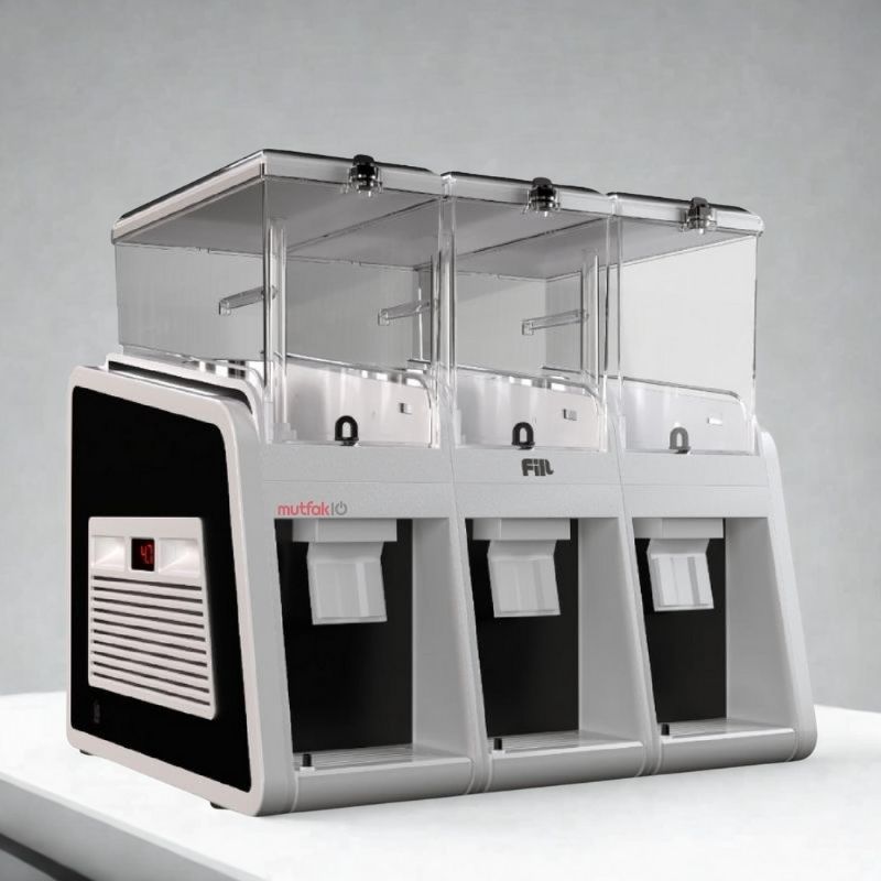 - · Fill Classic, 19 litrelik hazneleriyle tekli, ikili, üçlü ve dörtlü modellerde sunulur; böylece farklı servis ihtiyaçlarına kolayca uyum sağlar. Kafelerden otellere, restoranlardan self-servis alanlara kadar yoğun kullanıma uygun olarak tasarlanmıştır. Özel geliştirilmiş soğutucu yapısı, içecekleri uzun süre ideal sıcaklıkta tutarken düşük enerji tüketimiyle işletmelere verimlilik kazandırır.