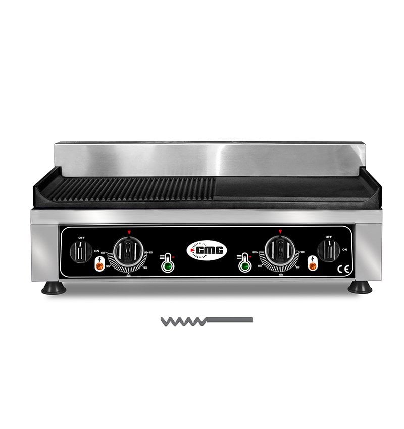 Bağımsız ısı ayarı yapılabilen iki farklı yarısı oluklu yarısı düz pişirme yüzeyi