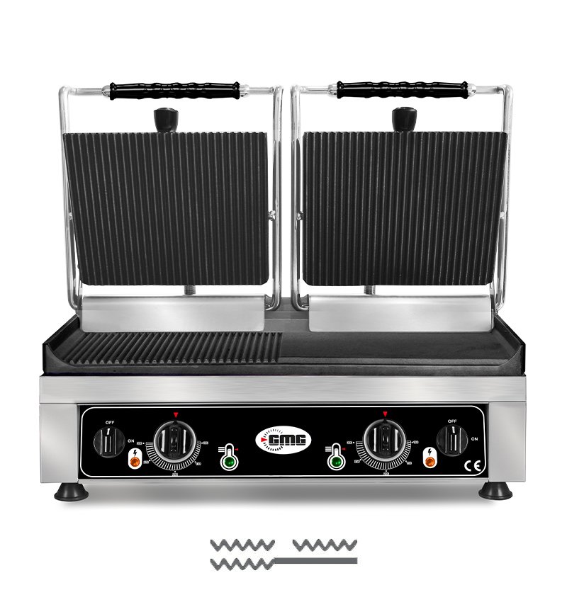 GMG KG 5530 DEG Tost Makinesi Alt Yüzey Yarı Oluk, Üst Yüzey Oluklu, 52×24 cm