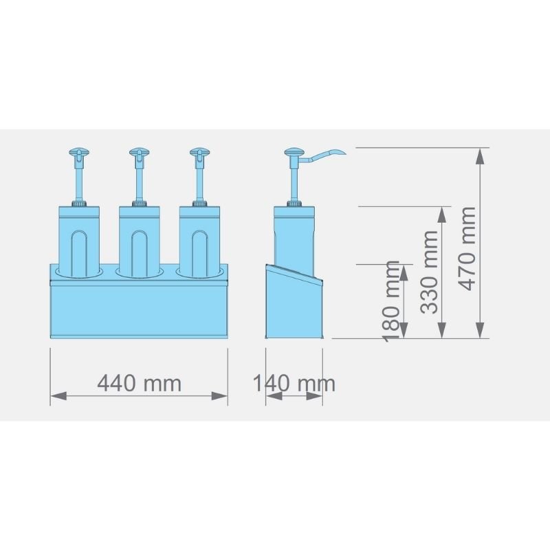 Kalando KD-006 Basmalı Sos Pompası Cam Silindir Hazneli Üçlü Stant 3×2.25 L