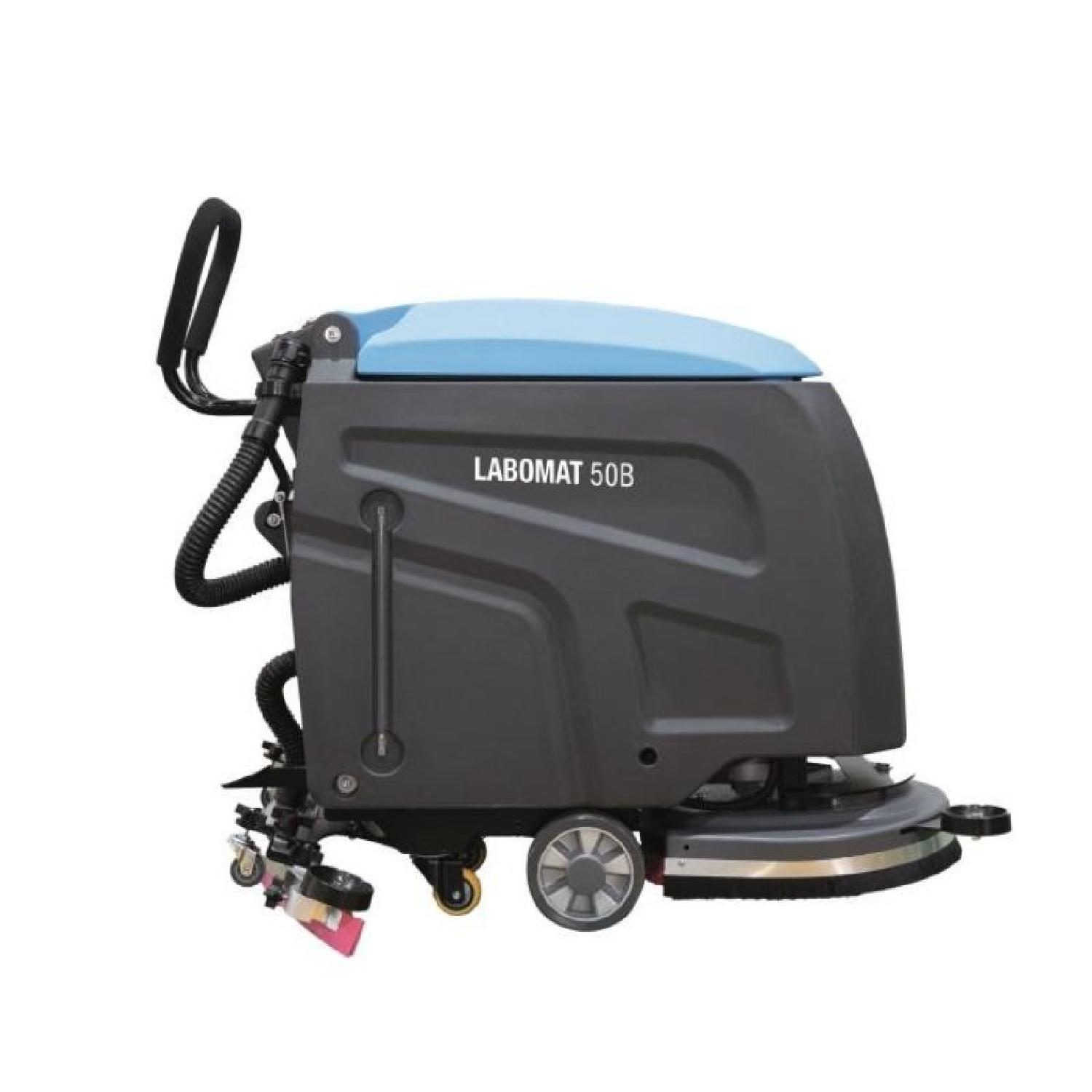 - Labomat 50 B Arkadan İtmeli Akülü Zemin Temizleme Makinası okul, hastane, konut ortak alanları, siteler gibi orta büyüklükteki alanlar için güçlü zemin temizleme makinasıdır.