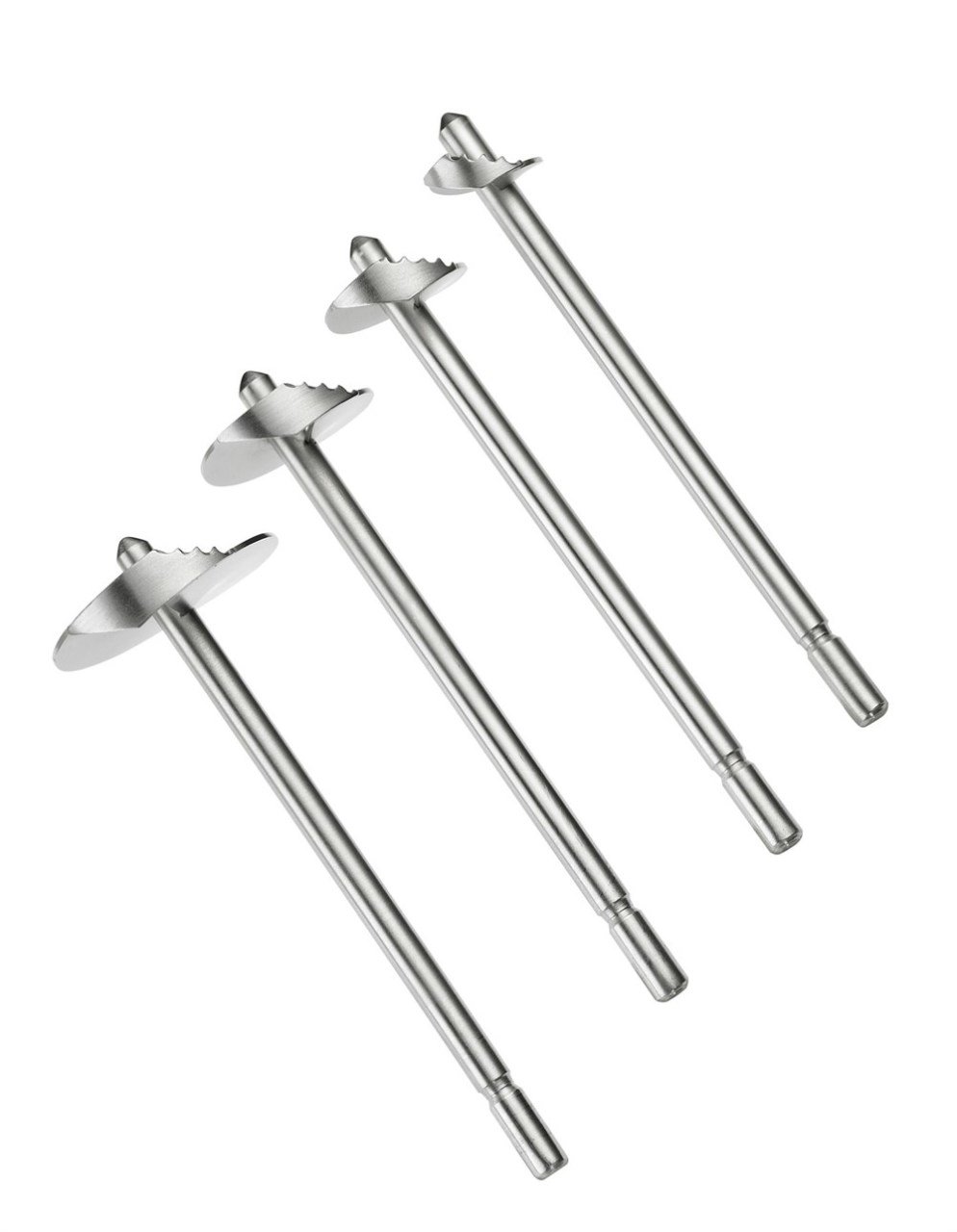 1.6 cm, 2.3 cm, 2.9 cm, 3.9 cm çapında sağlam paslanmaz çelik uçtan yapılmış bıçaklar nerdeyse tüm katı meyve ve sebzeleri oyabilirsiniz.