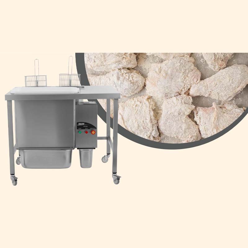 Un eleme mekanizmasıyla donatılmıştır. Bu mekanizma, yiyeceklerin üstüne homojen bir şekilde unun serpilmesini sağlar, böylece kaplama işlemi daha etkili ve düzenli olur.