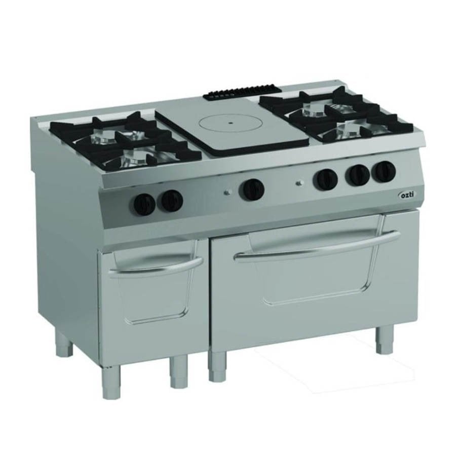 Öztiryakiler 700 Seri Kuzine Büyük Fırınlı Gazlı 6 Açık Ateş 120*70*85 (LP)-3×6 Kw+3×7,5 kW+13 kW Gazlı Fırın