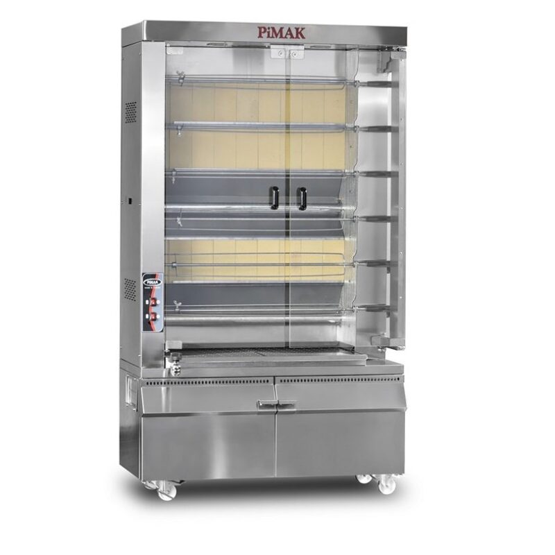 Pimak PI6/M17KB Kollu Piliç Çevirme Makinesi 8 Şiş 40 Piliç Kapasiteli Gazlı