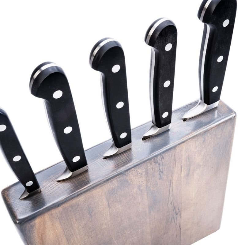 Şık ahşap bloğu ile bıçaklarınızı güvenli ve keskin şekilde saklayabilirsiniz.