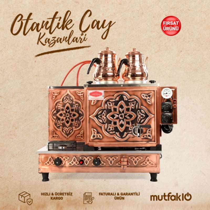 Tiryaki 2 Gözlü Bakır Çay Kazanı, 2 Demlikli, Elektrik+Gaz