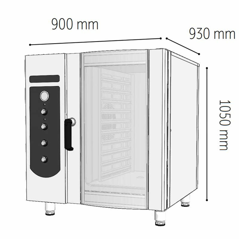 10 adet GN – 1/1 boyutundaki tepsinin veya benzer boyuttaki kapların aynı anda pişirilmesine olanak tanır.