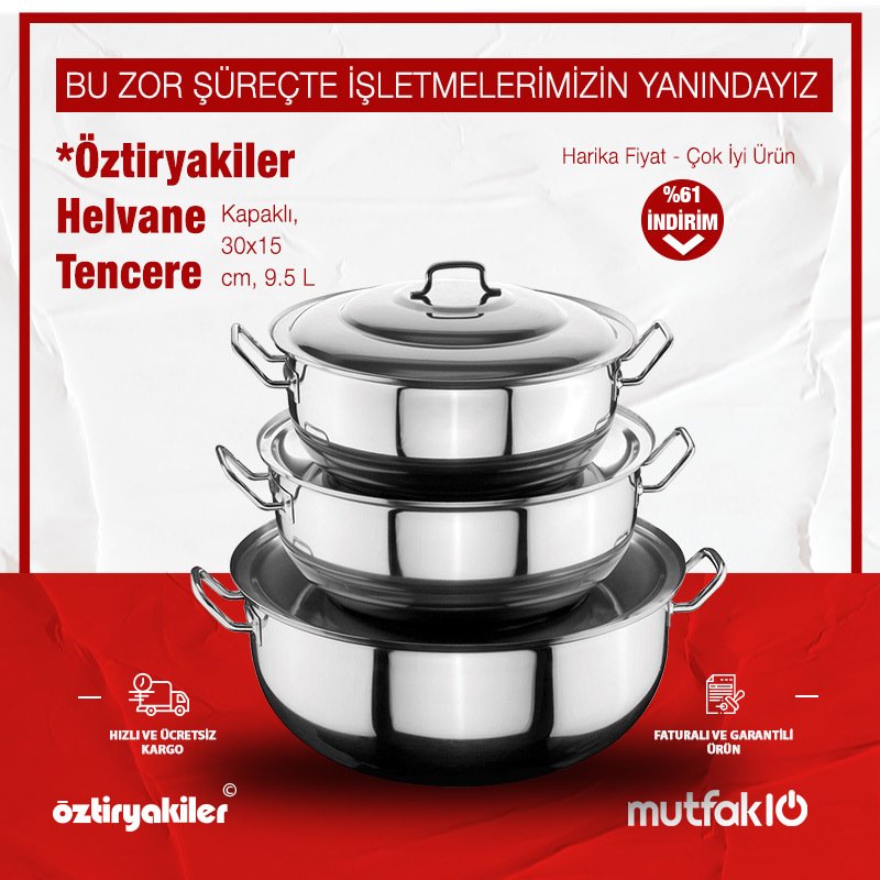 Öztiryakiler Helvane Tencere, Kapaklı, 30×15 cm, 9.5 L